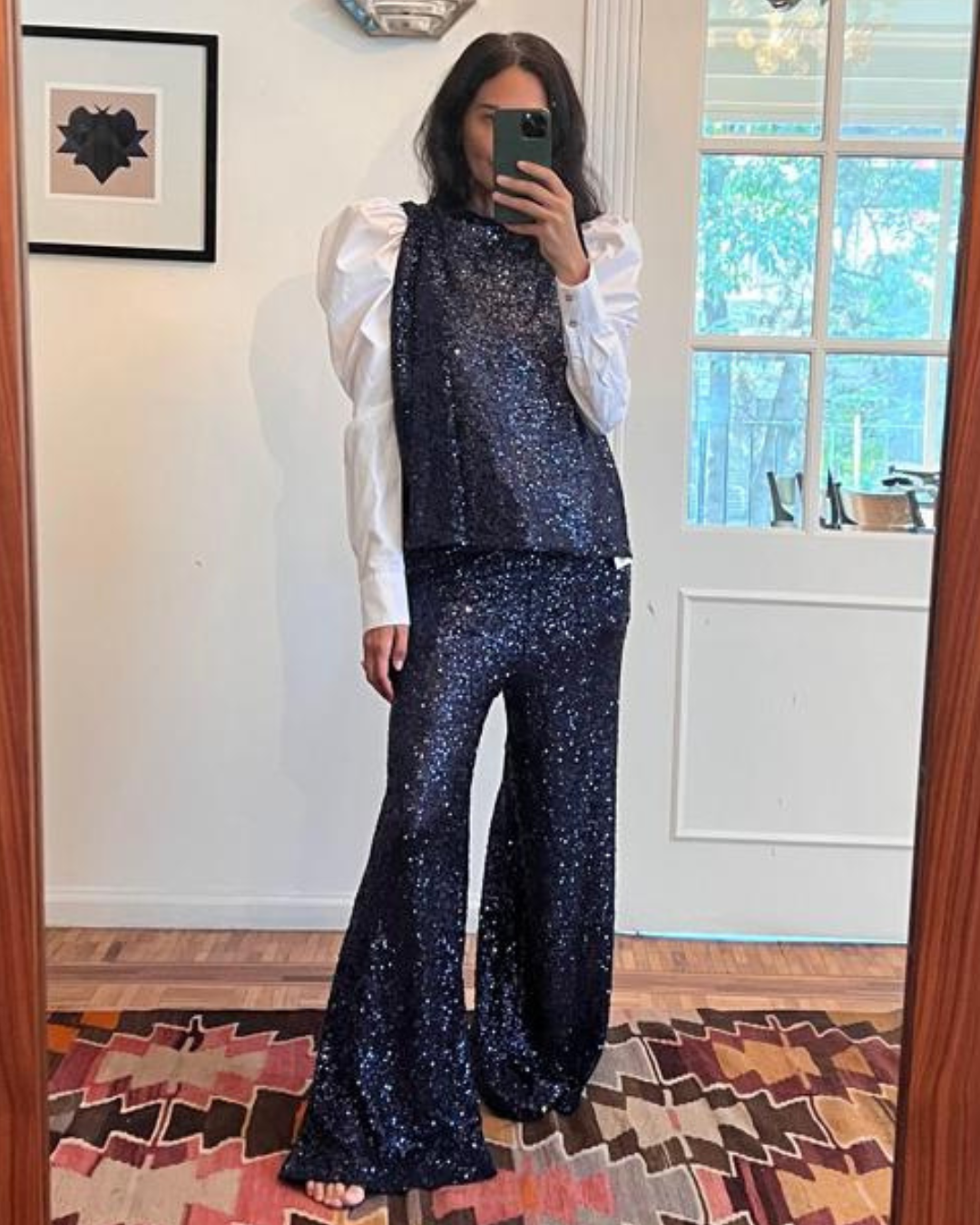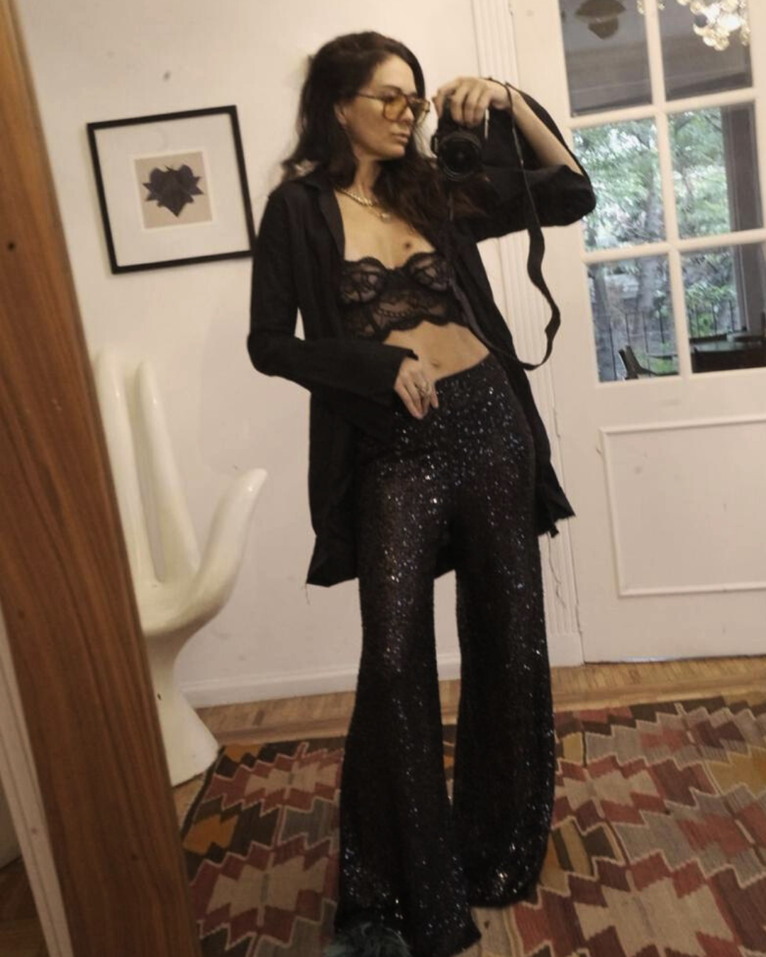 Un diseño pensado para brillar sin esfuerzo. Este pantalón de mesh con lentejuelas combina comodidad y statement fashion en una silueta amplia y fluida que alarga la figura y se mueve con elegancia al caminar. Su acabado ligeramente translúcido aporta un toque moderno y sensual, ideal para looks de noche o para elevar un styling más casual con contraste.