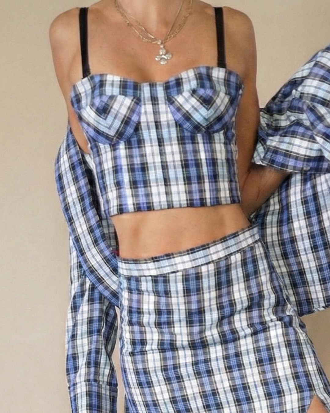 Un bustier diseñado para resaltar la silueta con un equilibrio perfecto entre estructura y feminidad. Su diseño con copa marcada y estampado de cuadros aporta un aire moderno y edgy, ideal para crear looks con personalidad y actitud. Las cintas ajustables en la parte posterior permiten adaptarlo al cuerpo y definir el fit de manera cómoda y favorecedora, mientras que su corte crop lo convierte en la pieza perfecta para combinar con faldas de cintura alta o prendas oversized para un styling effortless y sofisticado. Puedes llevarlo solo como pieza protagonista o combinarlo con la falda y la camisa a juego para crear un set coordinado que eleva el look y aporta un aire editorial con actitud contemporánea.
